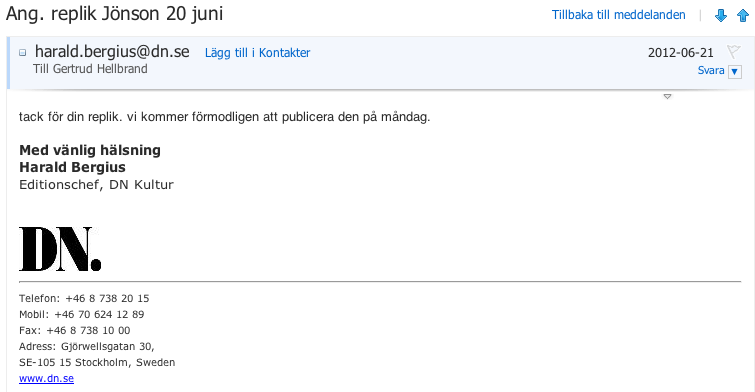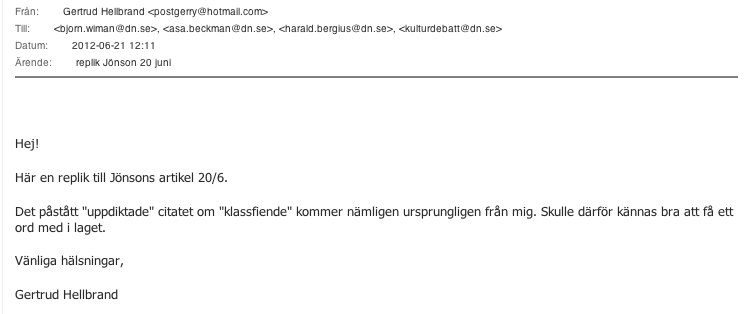 Beträffande debatten om klasshat som ägt rum i Dagens Nyheter har tidningens kulturchef (vanvördigt motsagd här på bloggen några gånger) nu beslutat lägga locket på i frågan, som väl därmed måste anses utagerad och avgjord i Johan Jönsons rekontextuella favör?