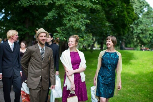 Inte ofta jag får tillfälle att visa upp mig i finkostymen, men så fick jag veta att jag figurerar med min uttjatade nuna någonstans, på en bröllopsbild från i somras, flankerad av min sambo, svägerska och svåger. Och vem vore jag om jag undanhöll läsekretsen den? Bakom ryggen försöker jag medveten om den dokumentation som äger rum nödtorftigt dölja den opassande papperskasse vari bröllopsgåvan (fågel-holken) frambars. Vad jag har i fickan vet jag inte, kanske mobiltelefonen? Utom-ordentligt trevligt och nöjsamt var det i alla fall.